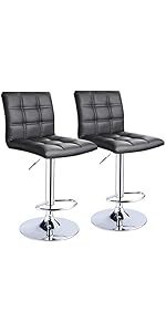 The Classic Back Bar Stools Set of 2 features adjustable height from 24.5" to 32.5" via an air-lift handle, a 360-degree swivel for maximum mobility, and a polished chrome base with footrest for stability and style. Upholstered in quilted faux leather, these stools combine comfort with modern design, making them perfect for kitchens, dining areas, or offices seeking a sleek, functional seating upgrade.