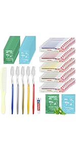 I bought these to put in my giveaway bags for the homeless and was disappointed with the size of the toothpaste - maybe 1 or 2 uses at best. I had to buy more of the larger (travel) size. I had been buying the items individually and I thought these would lower the cost a bit. NOT!