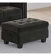 The Belffin Rectangular Velvet Ottoman combines elegant tufted black velvet upholstery with a sturdy solid wood frame, offering a spacious 32.3" x 23.6" storage compartment. Designed for multifunctional use as a footrest, coffee table, or extra seating, it supports up to 330 pounds and assembles easily without tools, making it a chic and practical addition to any modern home.