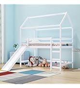 The Bunk Bed Twin Over Twin is a solid wood, low-profile bunk bed designed for kids and teens, featuring a built-in slide, detachable ladder, and safety guardrails. With a maximum load capacity of 400 lbs and a height of 46.5 inches, it’s perfect for low-ceiling rooms. This versatile bed can be used as a floor bunk or for storage, and it assembles quickly in under an hour.